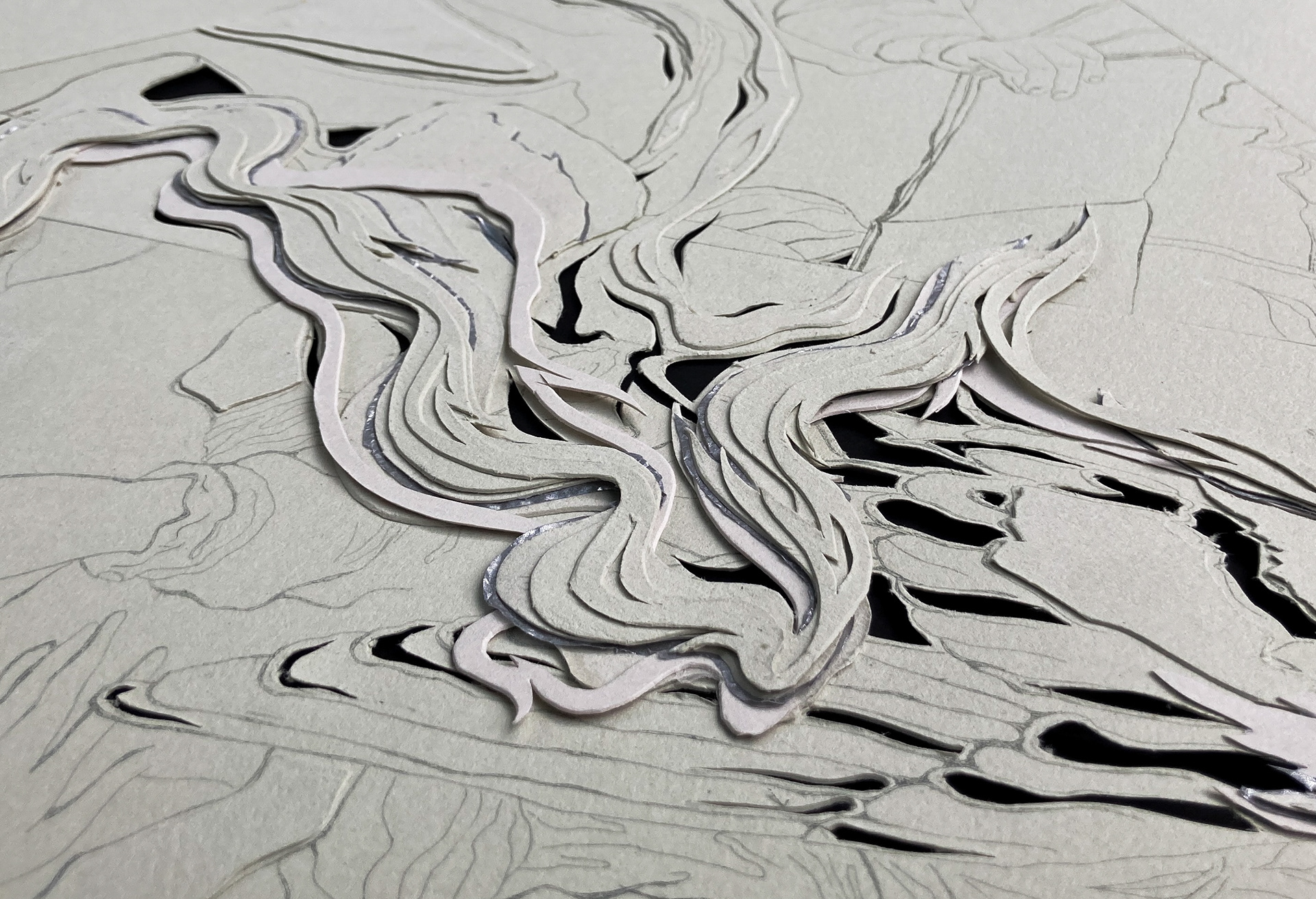 Hannah Chock, Detail of Absence/Presence III, Intaglio and Papercutting, 2023, 22 in. x 25 in.